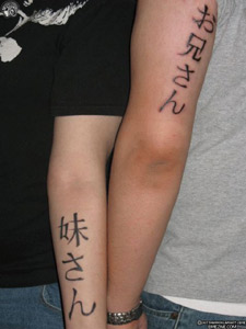 「あぁ、なんか違う・・」(小ネタ) おはようございま〜す。 今日も暑くなりそうな感じですね〜〜〜 まだ眠いですから日記書いて頭の体操♪ 「日本という国」「美しい国、日本」 古くは「スシ・ゲイシャ・フジヤマ」だったのが近年では「オタク・アニメ・ニンテンドー」 徐々に形を変化させつつ欧米でも少しずつ日本が知られ始めているらしい。 色んな形で。 例えば。 「漢字タトゥー」 そのまんま「Kanji Tatoo」と表記されているこれ。 微妙な感じです。 ![]() どういう意味なんでしょう・・・ ![]() 同情されたいのか?? ![]() そんな家庭の事情をデカデカと出されても・・・ ![]() 「耳なし芳一」状態;`;:゙;`(;゚;ж;゚;;)ブホッ ![]() 兄妹仲がいいのはヨロシイですが・・・ 果たして、これって彫られている文字の意味がわかっているんだろうか・・・ http:// 多分日本の英字Tシャツなんかもこんな印象なんでしょうね〜〜 |